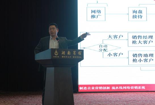 此次對接會(huì )得到了廣大企業(yè)的積極響應,來(lái)自國際國內的50多家信息技術(shù)企業(yè)、省內200多家工業(yè)企業(yè)的400多人參加會(huì )議。信息技術(shù)服務(wù)企業(yè)圍繞產(chǎn)品研發(fā)信息化、生產(chǎn)裝備數字化、生產(chǎn)過(guò)程智能化、經(jīng)營(yíng)管理網(wǎng)絡(luò )化等方面展示了多種兩化融合解決方案。湖南拾牛網(wǎng)絡(luò )作為國內首家專(zhuān)注大中型制造企業(yè)的網(wǎng)絡(luò )營(yíng)銷(xiāo)服務(wù)商,獲得與三一、中國電信、中興通訊等優(yōu)秀企業(yè)同等發(fā)言機會(huì ),拾牛網(wǎng)絡(luò )董事長(cháng)劉憲鋒就工業(yè)企業(yè)網(wǎng)絡(luò )營(yíng)銷(xiāo)存在的問(wèn)題與機會(huì )與參會(huì )者進(jìn)行了專(zhuān)題匯報,其《流水線(xiàn)網(wǎng)絡(luò )營(yíng)銷(xiāo)系統》較好的解決了工業(yè)企業(yè)在電子商務(wù)轉型升級過(guò)程中遇到的困惑和難題,為大中型制造企業(yè)轉型電子商務(wù)提供了創(chuàng )新思路。