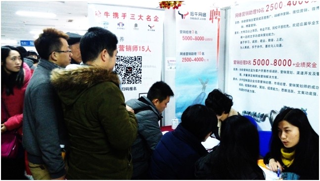 2014年2月16日,拾牛網(wǎng)絡(luò )首次亮相賀龍人才市場(chǎng)招聘會(huì )現場(chǎng)。高端大氣的展臺、專(zhuān)業(yè)熱情的面試官、別具一格的網(wǎng)絡(luò )營(yíng)銷(xiāo)招聘形式,吸引了無(wú)數應聘者的關(guān)注和認可。當天下午就有一大批優(yōu)秀的應聘者前往拾牛公司進(jìn)行復試。通過(guò)一整天的交流,拾牛網(wǎng)絡(luò )不僅收獲到優(yōu)秀的意向人才,更得到主辦方及應聘者的高度認可和贊揚!被評為“最具人氣展臺”和“最佳雇主品牌”,一場(chǎng)招聘會(huì )為何會(huì )有這樣的評價(jià)?拾牛網(wǎng)絡(luò )教你運用營(yíng)銷(xiāo)思維進(jìn)行招聘。