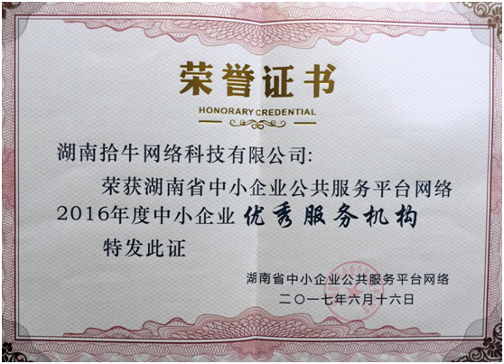 拾牛網(wǎng)絡(luò )榮獲湖南省“優(yōu)秀服務(wù)機構”“優(yōu)秀服務(wù)產(chǎn)品”兩項殊榮