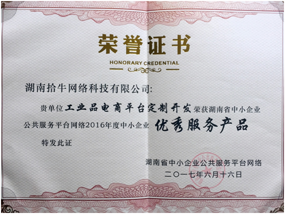 拾牛網(wǎng)絡(luò )喜獲2016年度中小企業(yè)“優(yōu)秀服務(wù)機構”和“優(yōu)秀服務(wù)產(chǎn)品”兩項榮譽(yù)。
